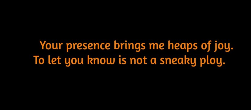 Have we been so negatively influenced that we find it so hard to be just spontaneous and genuine? It’s a daily exercise and you’re never finished. It’s not always appropriate to do so. For instance, there was a waitress I felt like having a cup of tea with, but I didn’t ask her. There was a friend I could have said more to, but didn’t, thinking the timing was wrong and also just because for some neurotic reason I’ve decided on an entirely arbitrary deadline to say more. The quirks of the human mind never cease to amaze me.