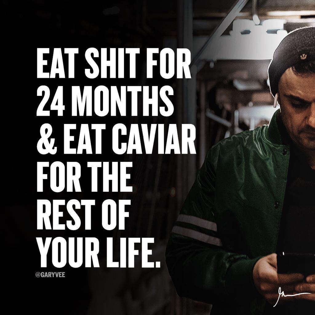He keeps reminding his audience, you’ve got to work. Everyone can come up with ideas, but it comes down to work hard, consistently. Work far harder than you are working now. The guy made 1,000 episodes of wine library tv. 1,000! How many people start a blog or a YouTube channel and quit after less than ten posts. Most people! Don’t be like most people, work harder than you ever imagined possible. And for that you have to LOVE the work, the pursuit, the grind, or you won’t.