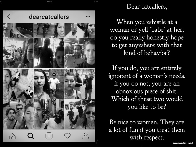 Yes, I agree. Wrote something similar in a comment. In those pictures those people seem to just enjoy the selfie moment as though they finally did something worthy of some attention. I guess if you can’t do anything creative or praiseworthy you will start being obnoxious to get noted. The instagram account won’t stop them, only encourage them. But I think she did manage to create more awareness around it. If bystanders start berating catcallers instead of ignoring them, they may start thinking twice. My blog post is also a bit useless, because the people who do this, don’t read… thanks for your thoughtful comment!