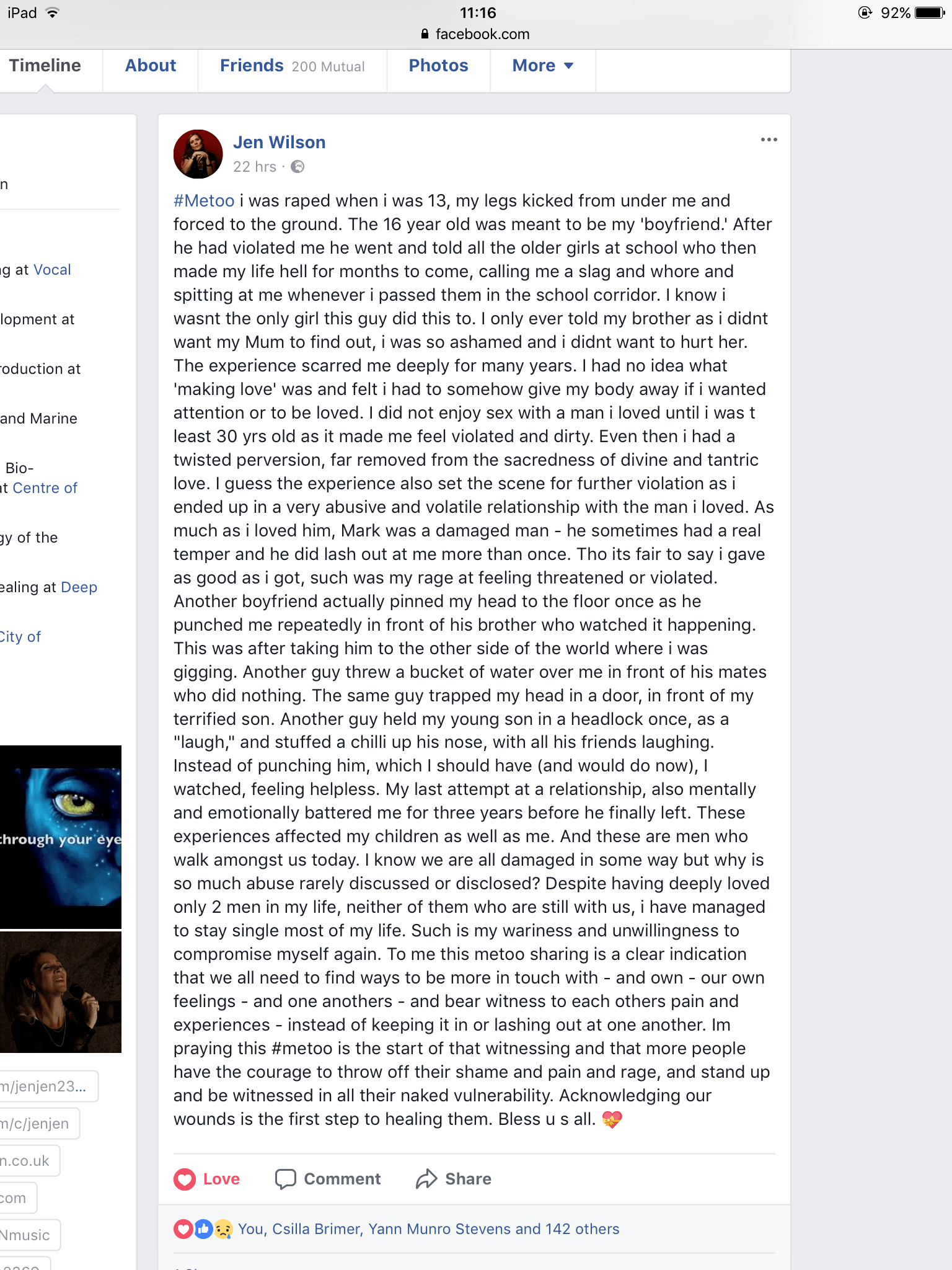 To read all the comments on it, you can visit Jen’s profile.