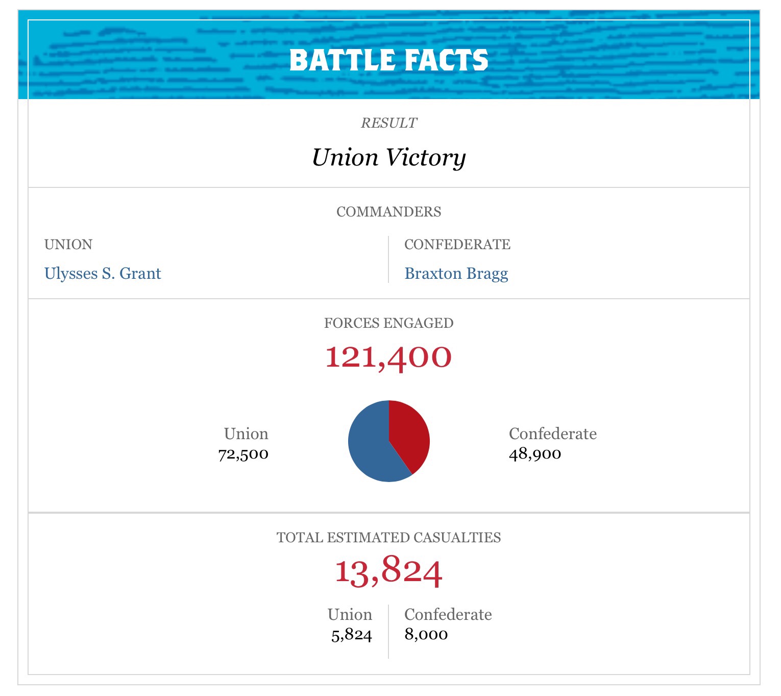 Some figures for the battle that cost the Confederacy the populous state of Tennessee: