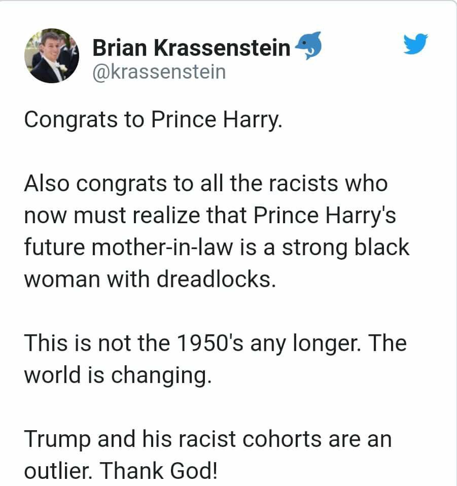 PS I do feel we have no use for aristocracy and royals and that we should abolish these feudal leftovers as soon as possible, no matter how likeable they are. And as much as I dislike Trump, I do prefer him over any royalty, since he was democratically elected (democracy is far from perfect, but a monarchy gives me far bigger creeps). That being said, Meghan looks like a really nice and intelligent person, who says she’ll devoted her time to humanitarian work.