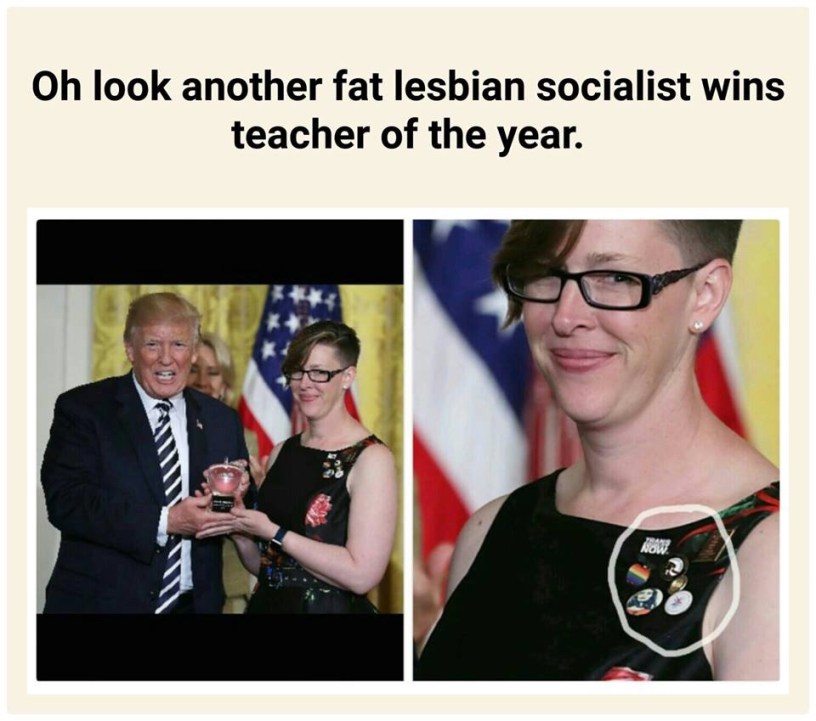 At the ceremony she staged a silent protest and refused to shake Donald Trump’s hand. Personally I think this is just being rude and a silly way of protesting. She’s already wearing a bunch of buttons that display causes Donald Trump does not support. Not shaking someone’s hand is very rude in our culture. Trump’s fans immediately started a social media frenzy saluting their local God for ‘being the bigger person’, as he still went on to praise her.
