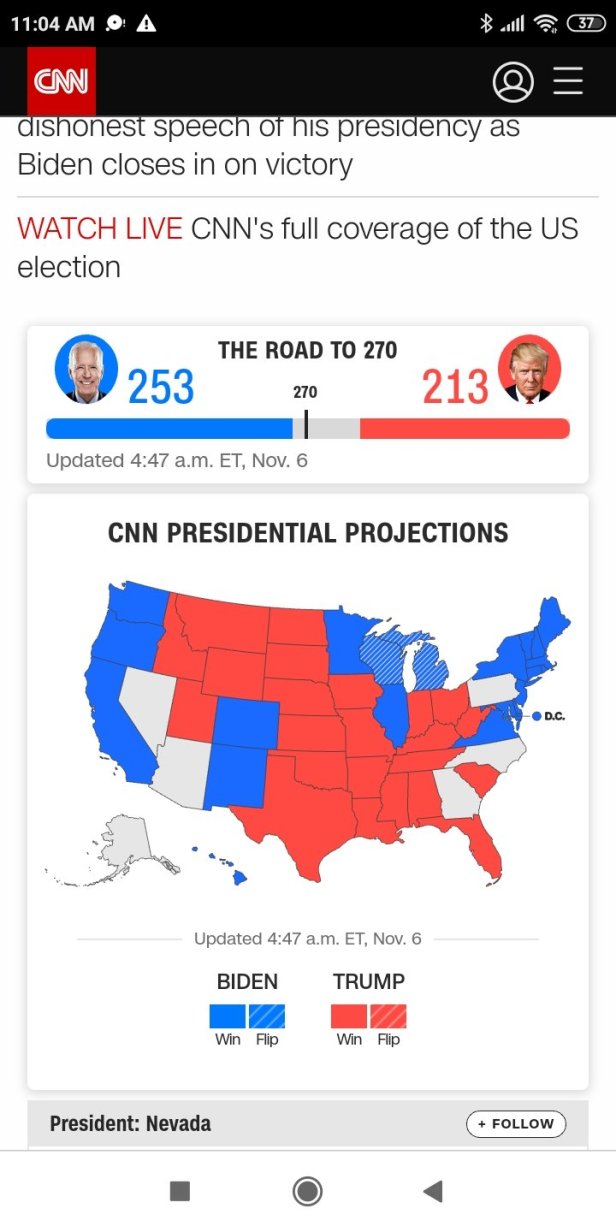 Georgia gets Biden an additional 16 points and by projecting a Biden victory in Arizona Biden will have 280 electoral votes. Ten more than he needs to win the presidency. At least according to Fox news.