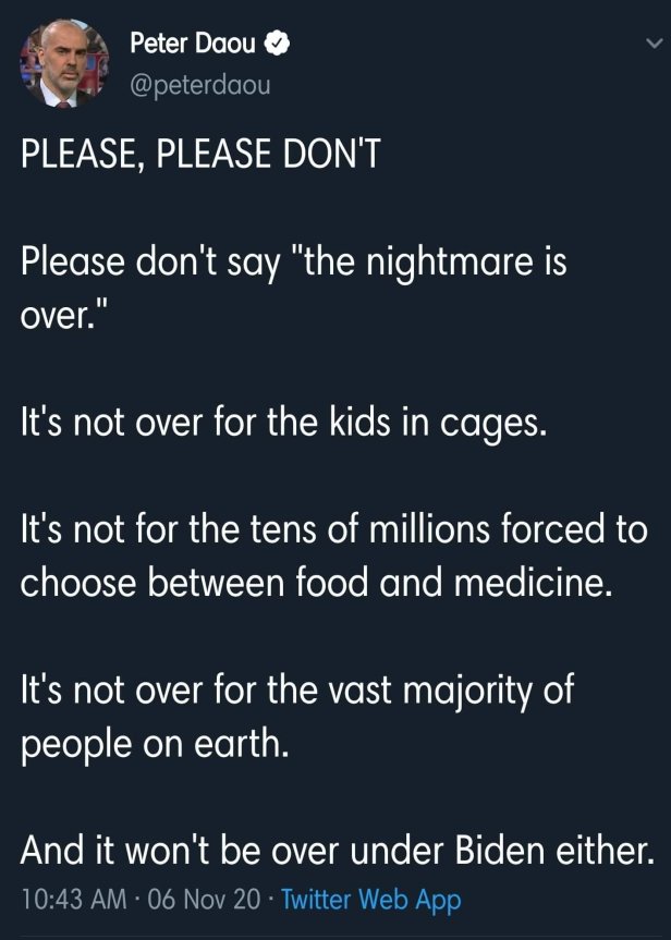 It’s done. The vice-president likes hiphop. Americans can stop rationing their insulin and Amazon workers can toss their food stamps. Our noble saviors have arrived. Hunter Biden will soon be able to get a real salary instead of the pitiful 50,000 dollars a month he gets now thanks to daddy. Now would be the time to finally buy those shares in the military industry. Do it on the 11th of November and celebrate the end of the first world war by ensuring your financial future. Thanks to Biden some brown people will soon get bombed. But it’s ok, his vice-president is also brown.