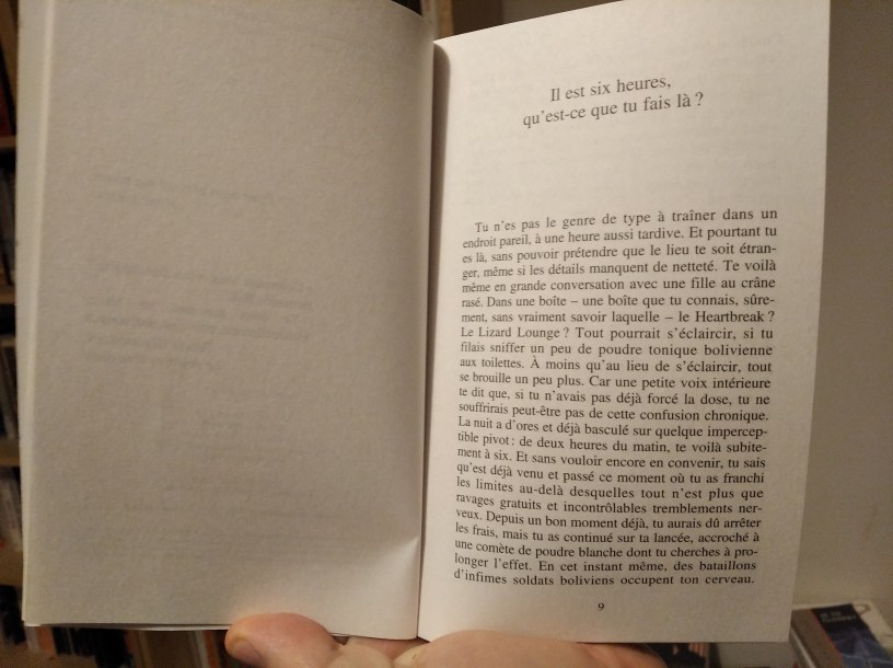 In the picture you see a copy of one of my favorite books: Bright lights, big city. It’s the French version. I have read it in German and English as well. If I can find I will read it in Czech or Spanish or Russian or Slovenian.