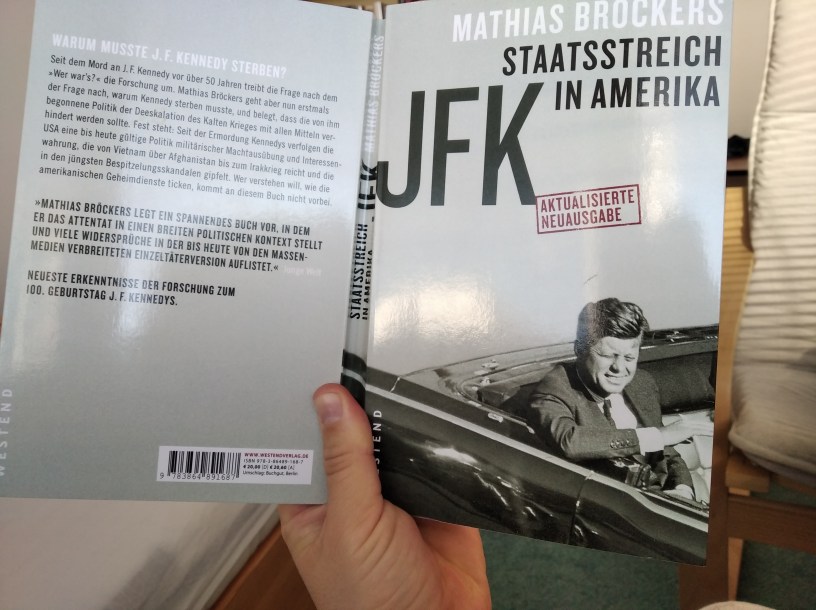 When am not teaching, am reading. German, French, Slovak, English. I haven’t read a Dutch book in years. The last one I read was ‘Intimiteit’ (Intimacy) by Paul Verhaeghe. Today am reading a German book about the JFK assassination. It’s good, but not great. It doesn’t seem to explain why JFK lookalike officer Tippit was murdered. (To perform a body swap). Nor does it explain where the fatal shot came from. (A storm drain right next to the spot where the driver briefly stopped the car, entirely against all security measures).