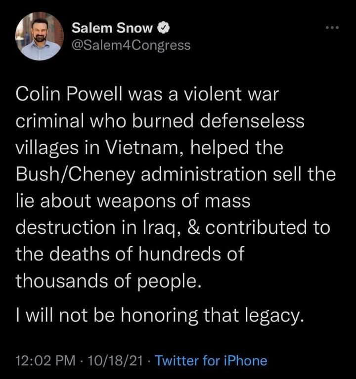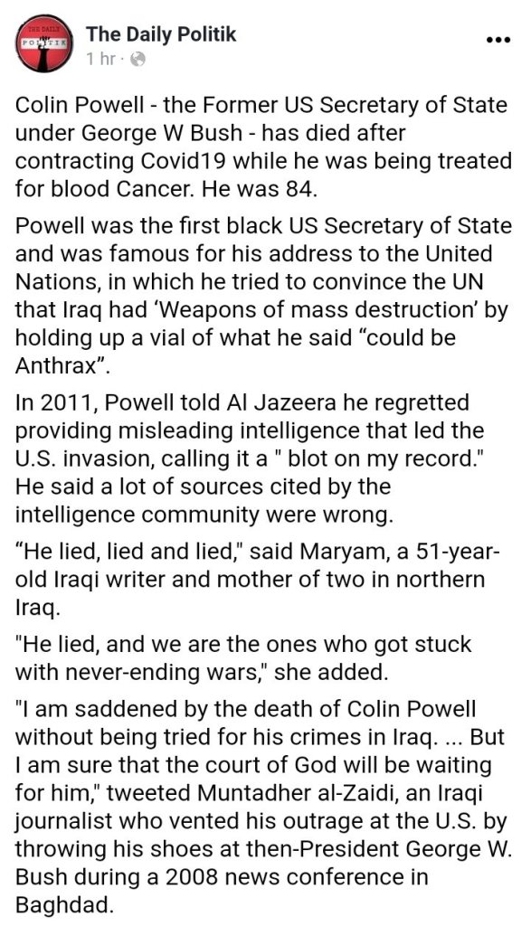 War criminal Colin Powell is dead. If there is a hell he is in it