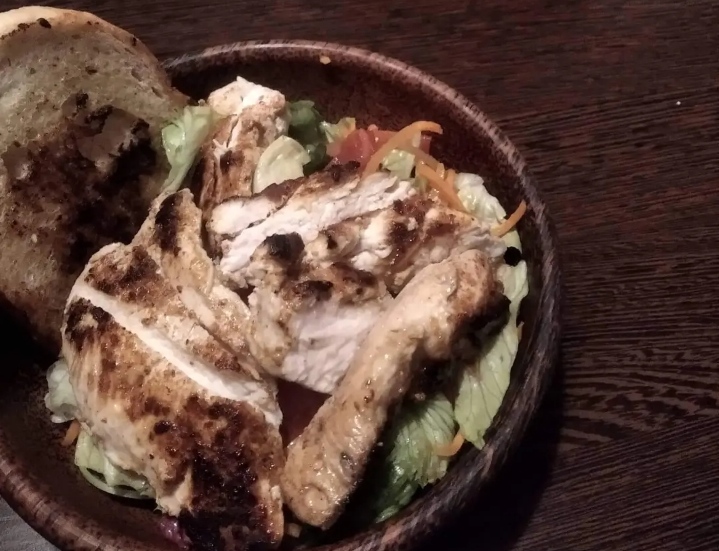 Not always easy to find good bodybuilding food in a restaurant, but this was perfect. Gave the piece of bread away, because except on two days per week I avoid carbs like the plague. So just lean chicken and vegetables. Very tasty and nothing that is going to cause weight gain in unwanted places. Been very careful, though not fanatical about my diet since July. Result: All the clothes I wore as a college student fit again.