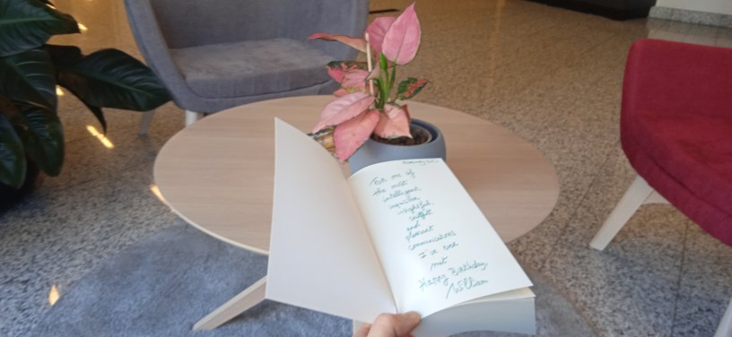 In the pic you see what I wrote in a book I gave to one of my clients for his birthday.