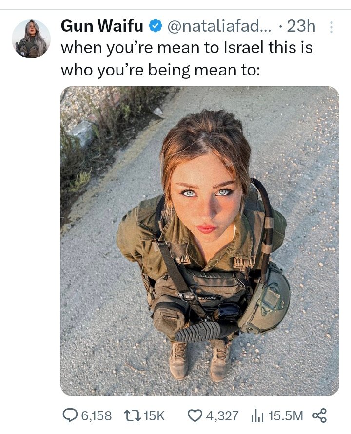 14. The Israeli side will vigorously use female sex symbols to get you to accept slaughtering innocents (see picture below) Doesn’t seem to work too well…