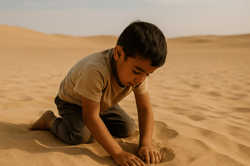 His dopamine levels are too high to register any horror. He feels it in his gut. This will be it today! He abandons his well building project. At 8 years old his goal in life is to perform one act of kindness a day. True to what he promised his grandfather. Only a life of service is a life of contented pride. Samir leaves the sauna. Determined. He will catch the dog!